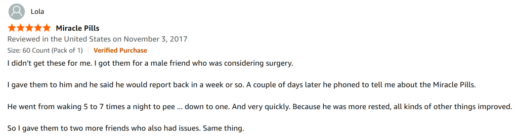 All buyers get an E-book titled “Prostate Health: A guide to healthy lifestyle”. This guide contains foods to eat and foods not to eat for Prostate Problems.